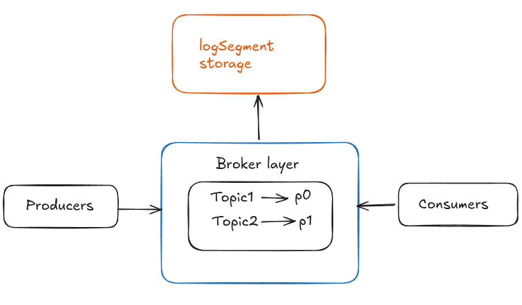 So now flow becomes: Producer → ClusterCoordService → correct Broker → Partition → LogSegment